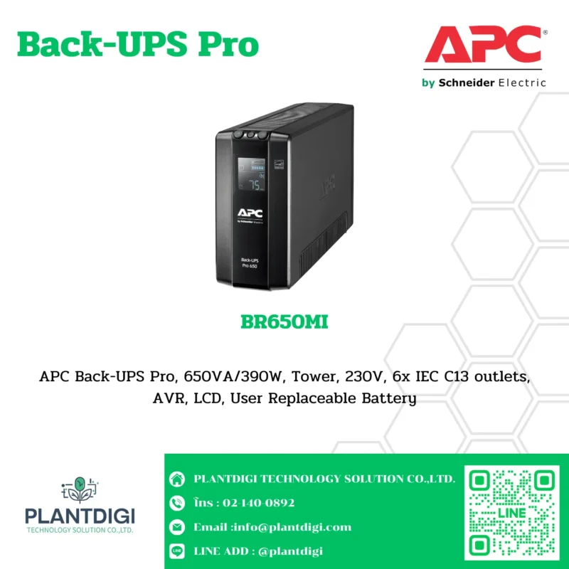 APC Back-UPS Pro, 650VA/390W, Tower, 230V, 6x IEC C13 outlets, AVR, LCD, User Replaceable Battery