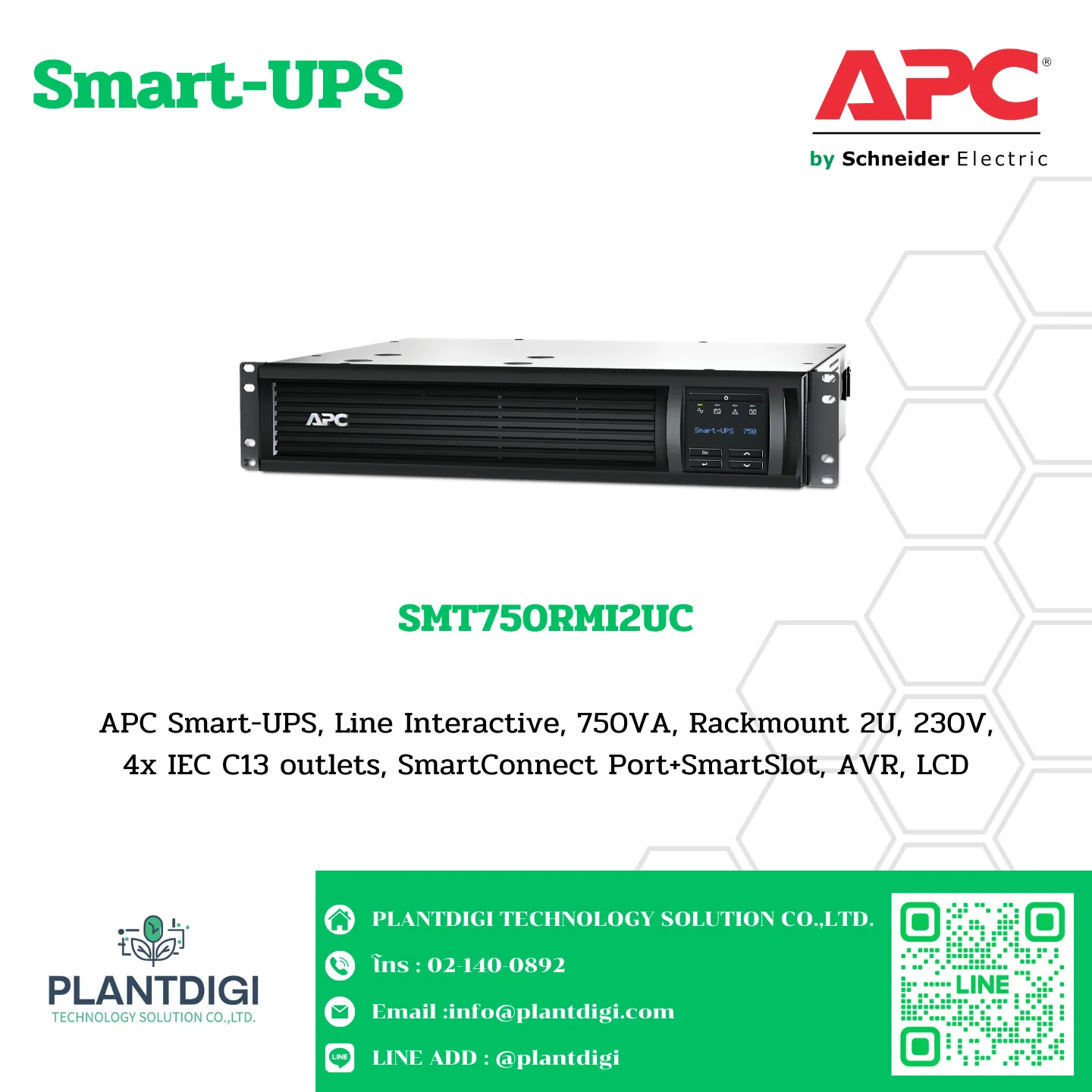 APC Smart-UPS, Line Interactive, 750VA, Rackmount 2U, 230V, 4x IEC C13 outlets, SmartConnect Port+SmartSlot, AVR, LCD