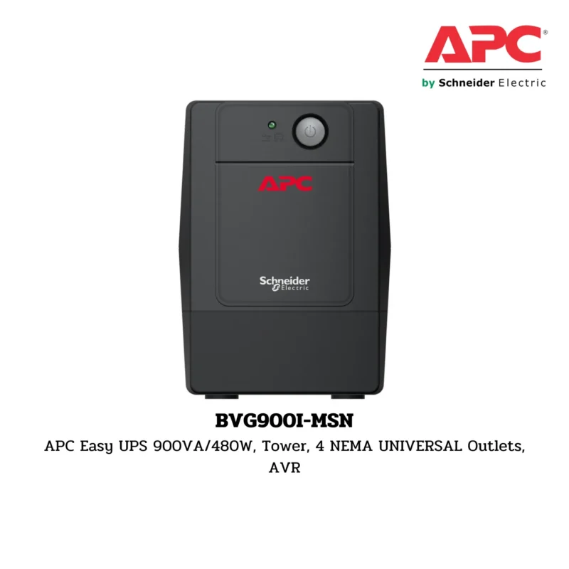 APC Easy UPS BVG900I-MSN เป็นเครื่องสำรองไฟตระกูล Easy UPS BVG Series ขนาด 900VA/480W รูปแบบ Tower มีช่องจ่ายไฟ 4 NEMA UNIVERSAL Outlets และมีระบบ AVR (Automatic Voltage Regulation)