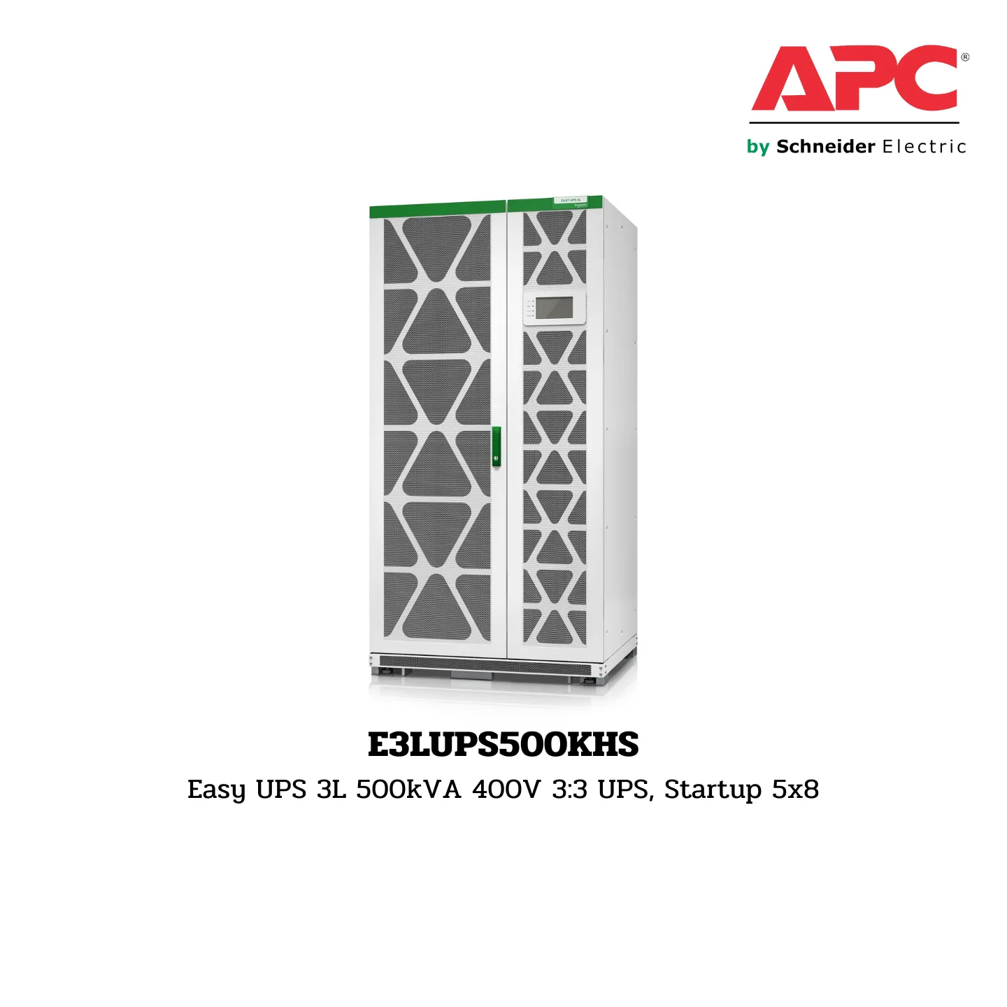 E3LUPS500KHS : Easy-to-configure, easy-to-use, and easy-to-service 400 kVA 3-phase UPS with an exceptional combination of competitive specifications, compact footprint, and highly available parallel and redundant designs. The EcoStruxure connected Schneider Electric Easy UPS 3L is the easy choice for business continuity on your shop floor or in your electrical room. Includes 5×8 start-up service.