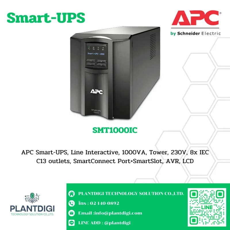 APC Smart-UPS, Line Interactive, 1000VA, Tower, 230V, 8x IEC C13 outlets, SmartConnect Port+SmartSlot, AVR, LCD
