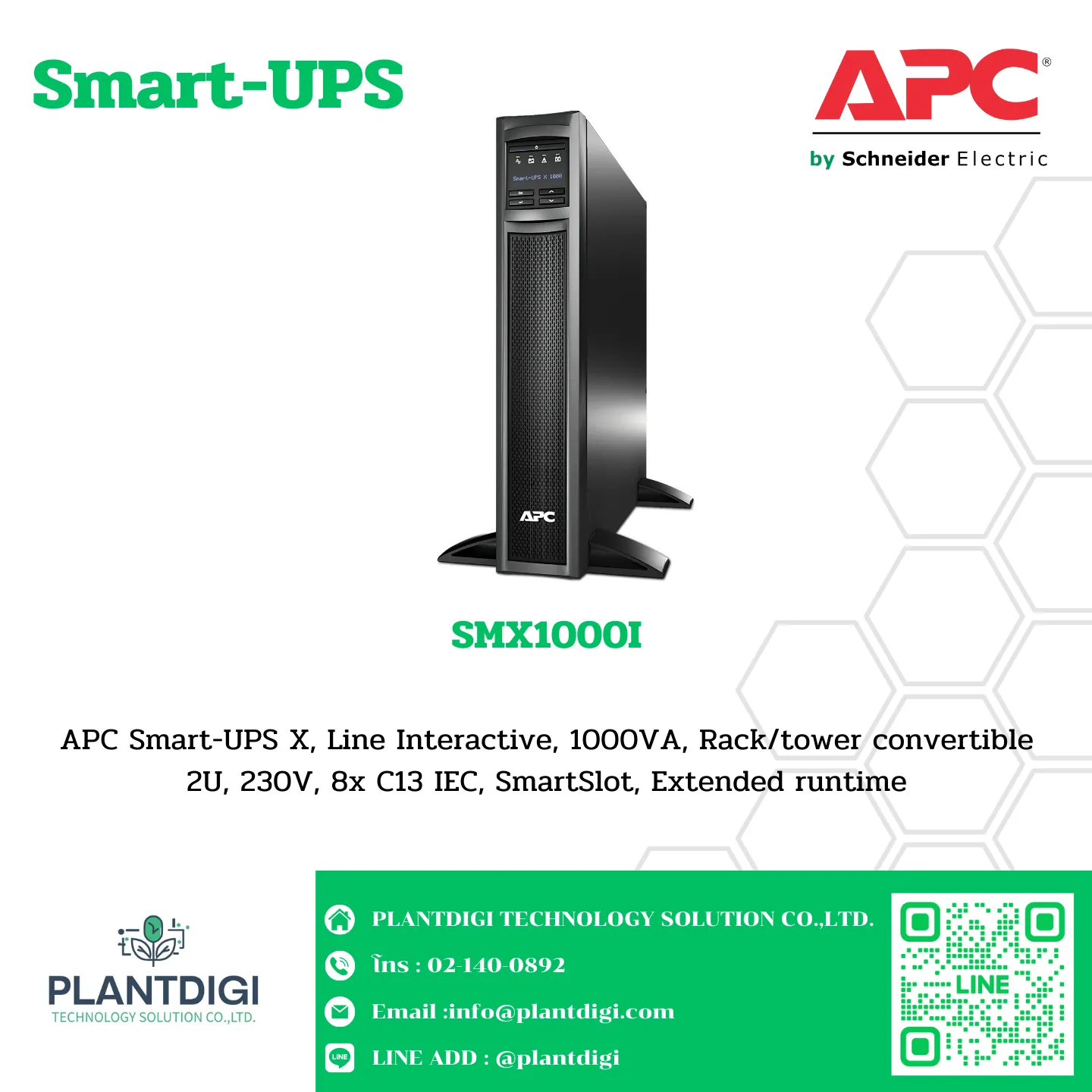 APC Smart-UPS X, Line Interactive, 1000VA, Rack/tower convertible 2U, 230V, 8x C13 IEC, SmartSlot, Extended runtime