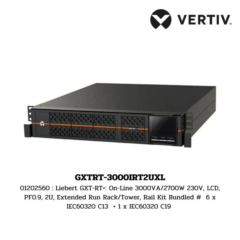01202560 : Liebert GXT-RT+: On-Line 3000VA/2700W 230V, LCD, PF0.9, 2U, Extended Run Rack/Tower, Rail Kit Bundled # 6 x IEC60320 C13 + 1 x IEC60320 C19