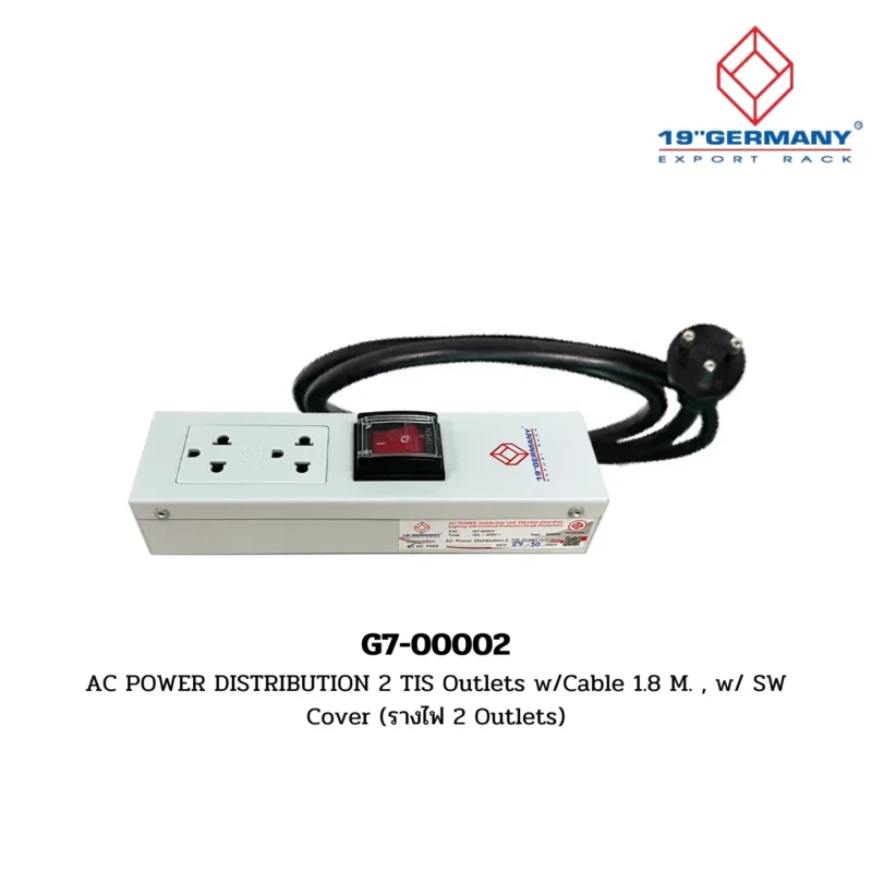 Overview: The G7-00002 AC Power Distribution unit features 2 TIS outlets with a 1.8-meter cable and a switch cover. This accessory is part of the 19” German Rack’s Accessories sub-range within the GERMANY RACK range