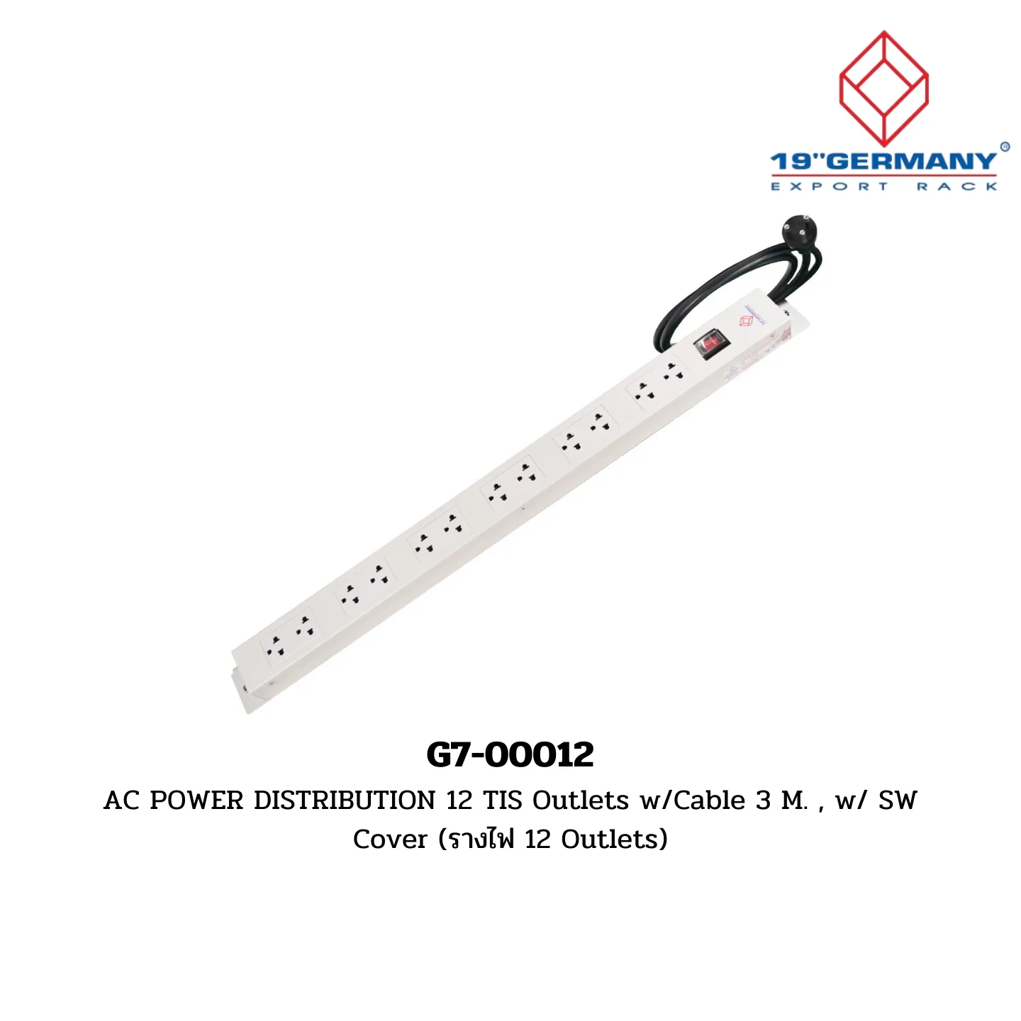 Overview: The G7-00012 AC Power Distribution unit features 12 TIS outlets with a 3-meter cable and a switch cover. This accessory is part of the 19” German Rack’s Accessories sub-range within the GERMANY RACK range