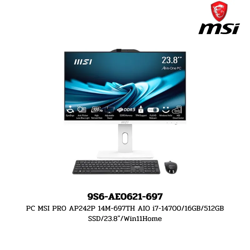 PC MSI PRO AP242P 14M-697TH AIO i7-14700/16GB/512GB SSD/23.8″/Win11Home (9S6-AE0621-697)