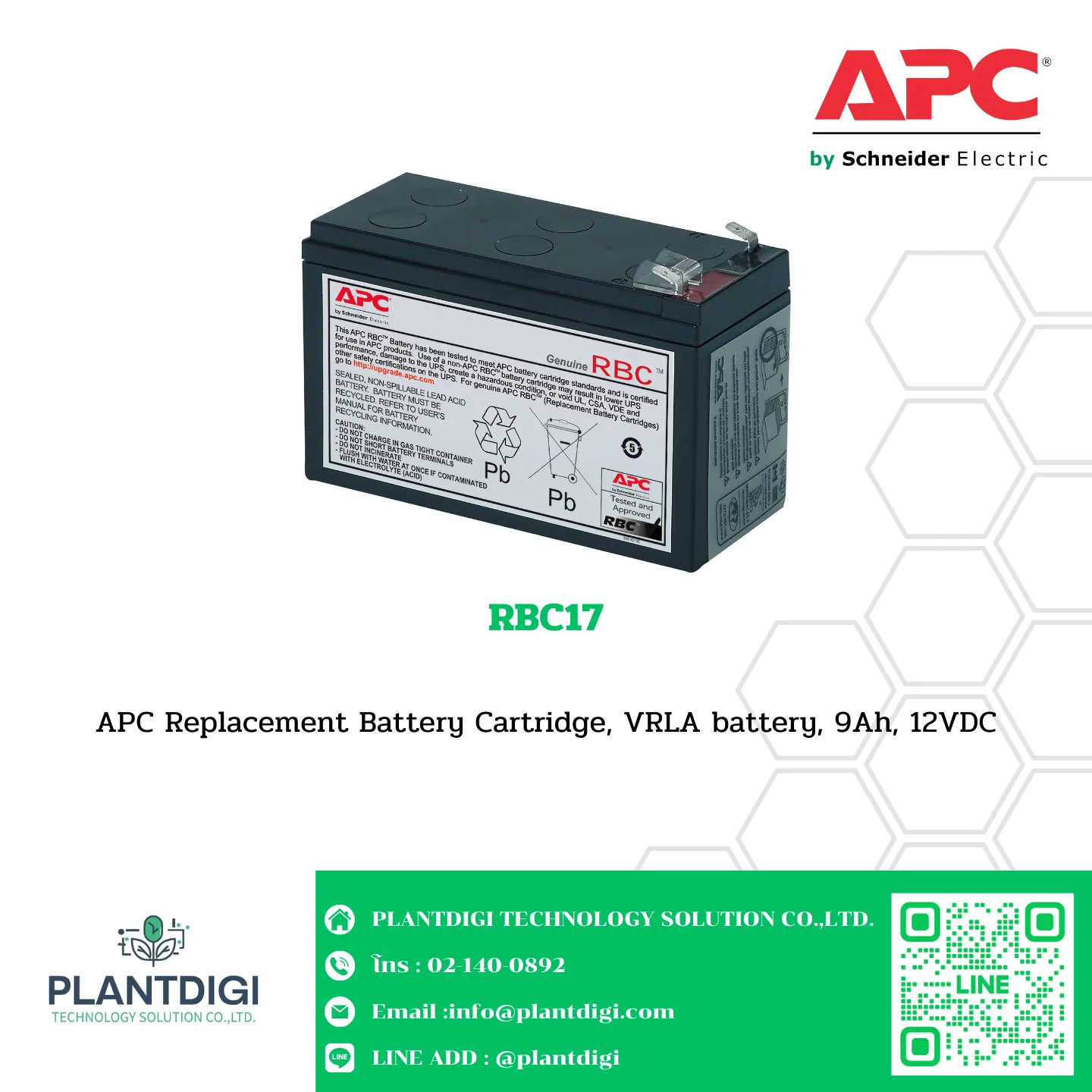 – 9Ah 12Vdc replaceable battery for APC Back-UPS