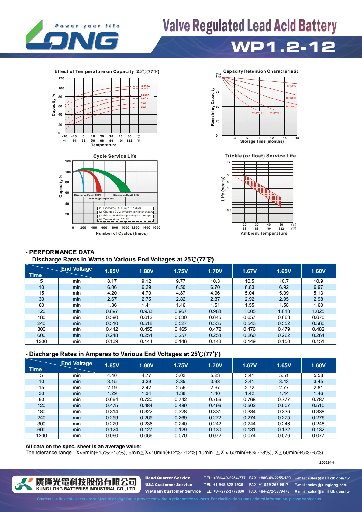 - 5 hour rate (0.204A to 10.20V) 1.02Ah
