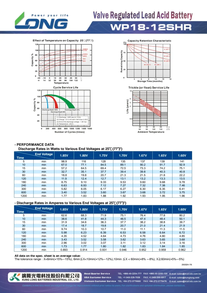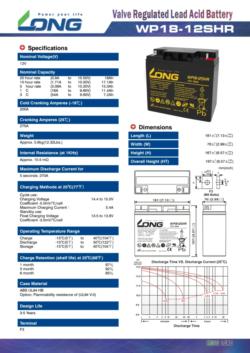 แบตเตอรี่ Long WP18-12SHR (12V18AH) เป็นตัวอย่างหนึ่งของผลิตภัณฑ์ในซีรี่ส์นี้ที่เหมาะสำหรับอุปกรณ์ขนาดกลางที่ต้องการแหล่งพลังงานที่เชื่อถือได้และมีอัตราการจ่ายกระแสสูง (SHR = Super High Rate) เช่น ระบบ UPS, อุปกรณ์ทางการแพทย์, และระบบสำรองพลังงานฉุกเฉิน