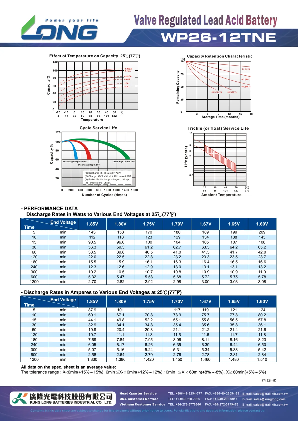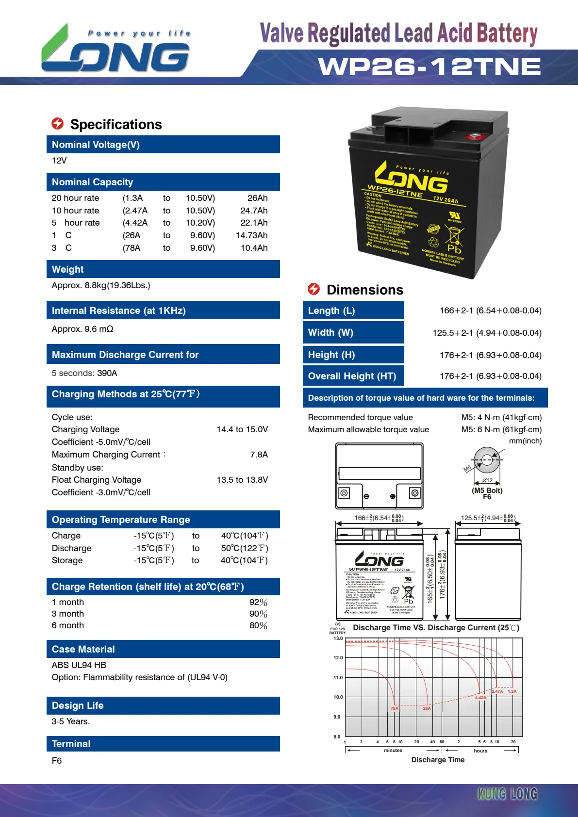 แบตเตอรี่ Long WP26-12TNE (12V26AH)