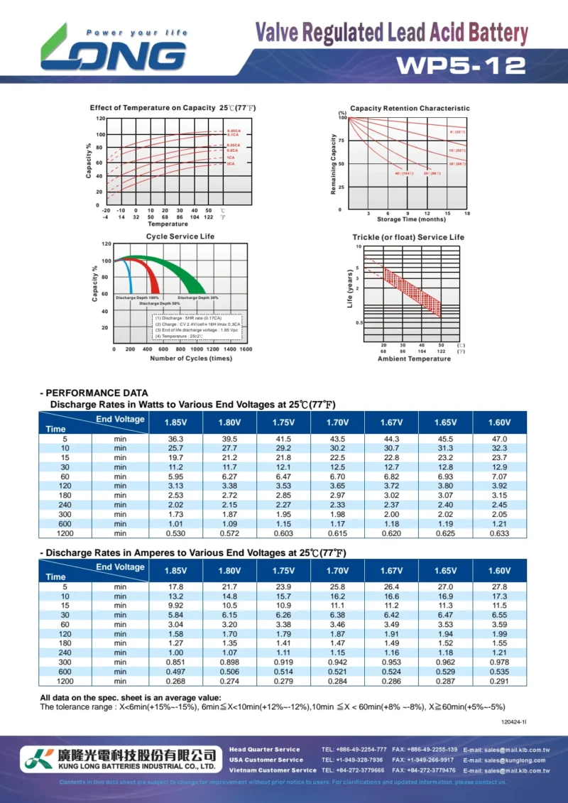 แบตเตอรี่ Long WP5-12 (12V5AH) เป็นตัวอย่างหนึ่งของผลิตภัณฑ์ในซีรี่ส์นี้ที่เหมาะสำหรับอุปกรณ์ขนาดเล็กถึงกลางที่ต้องการแหล่งพลังงานที่เชื่อถือได้ เช่น ระบบเตือนภัย, ไฟฉุกเฉิน, อุปกรณ์ทางการแพทย์ขนาดเล็ก และอุปกรณ์อิเล็กทรอนิกส์แบบพกพา