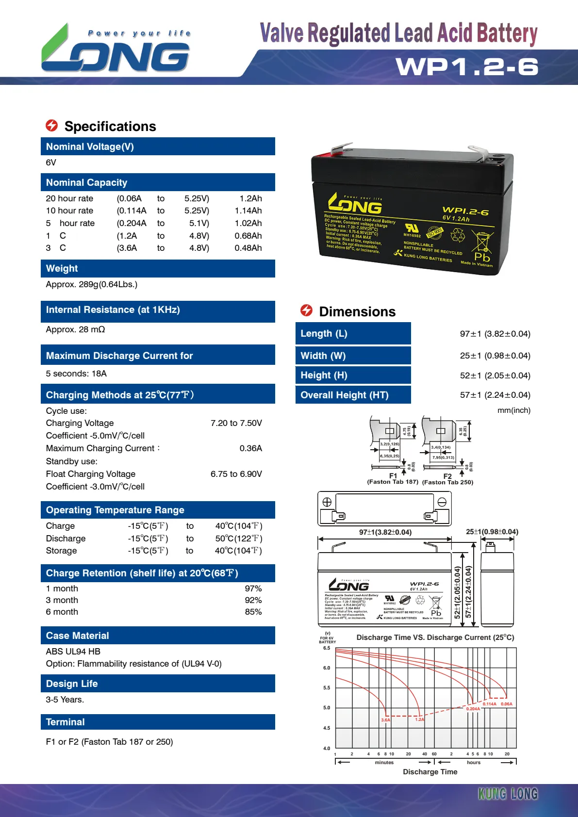 แบตเตอรี่ Long WP1.2-6 เป็นหนึ่งในผลิตภัณฑ์ในซีรี่ส์นี้ที่เหมาะสำหรับอุปกรณ์ขนาดเล็กที่ต้องการแหล่งพลังงานที่เชื่อถือได้ เช่น ไฟฉุกเฉิน, ระบบรักษาความปลอดภัย, อุปกรณ์ทางการแพทย์ขนาดเล็ก, และของเล่นอิเล็กทรอนิกส์ ด้วยขนาดที่กะทัดรัดและประสิทธิภาพที่เชื่อถือได้ ทำให้แบตเตอรี่ WP1.2-6 เป็นตัวเลือกที่ได้รับความนิยมในหลายๆ การใช้งาน