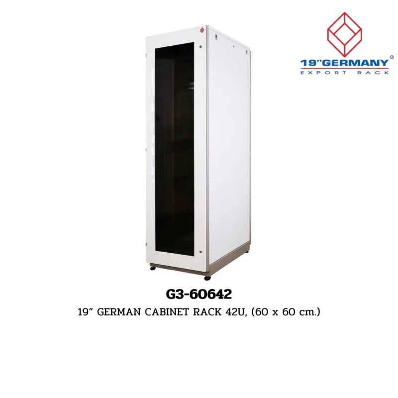 Overview: The G3-60642 19” German Cabinet Rack, featuring a 42U capacity and dimensions of 60 x 60 x 205 cm, comes in a sleek two-tone white-gray finish. This cabinet rack is part of the 19″ German Cabinet Rack sub-range within the GERMANY RACK range, and it is a product of the G3 Series by GERMAN RACK.