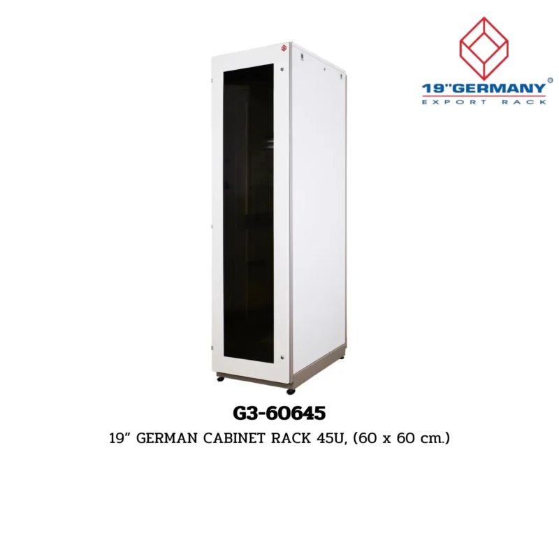 Overview: The G3-60645 19” German Cabinet Rack, featuring a 45U capacity and dimensions of 60 x 60 x 218.5 cm, comes in a sleek two-tone white-gray finish. This cabinet rack is part of the 19″ German Cabinet Rack sub-range within the GERMANY RACK range, and it is a product of the G3 Series by GERMAN RACK.