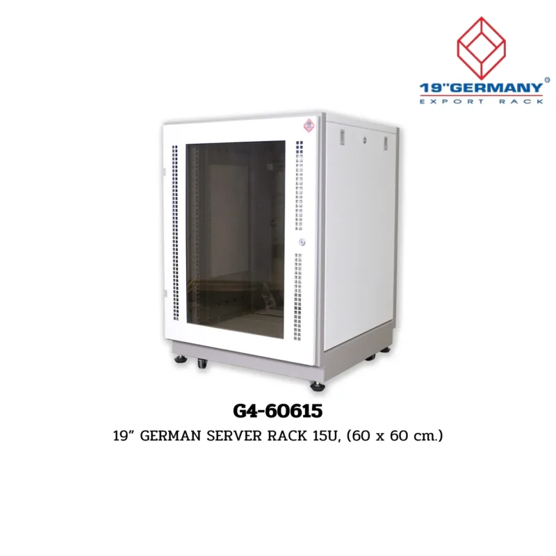Overview: The G4-60615 19” German Server Rack, featuring a 15U capacity and dimensions of 60 x 60 x 85 cm, comes in a sleek two-tone white-gray finish. This server rack is part of the 19″ German Server Rack sub-range within the GERMANY RACK range, and it is a product of the G4 Series by GERMAN RACK.