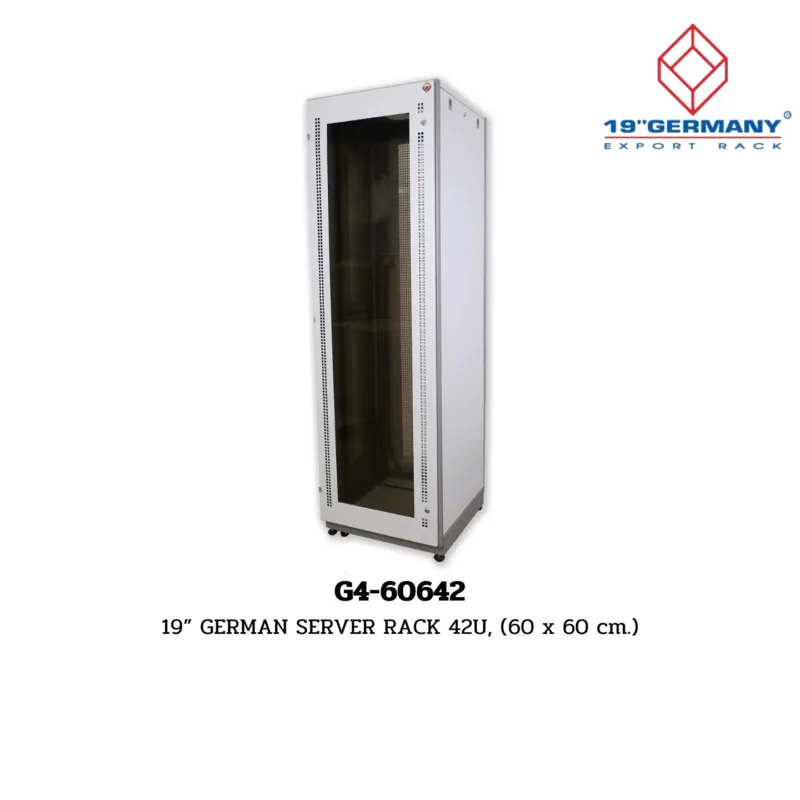 Overview: The G4-60642 19” German Server Rack, featuring a 42U capacity and dimensions of 60 x 60 x 205 cm, comes in a sleek two-tone white-gray finish. This server rack is part of the 19″ German Server Rack sub-range within the GERMANY RACK range, and it is a product of the G4 Series by GERMAN RACK.