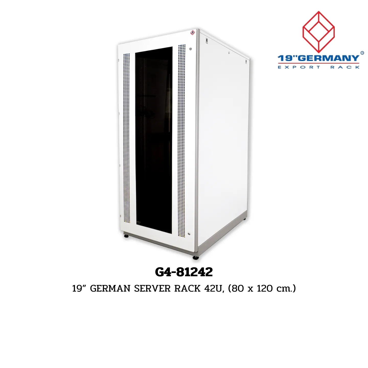 Overview: The G4-81242 19” German Server Rack, featuring a 42U capacity and dimensions of 80 x 120 x 205 cm, comes in a sleek two-tone white-gray finish. This server rack is part of the 19″ German Server Rack sub-range within the GERMANY RACK range, and it is a product of the G4 Series by GERMAN RACK.
