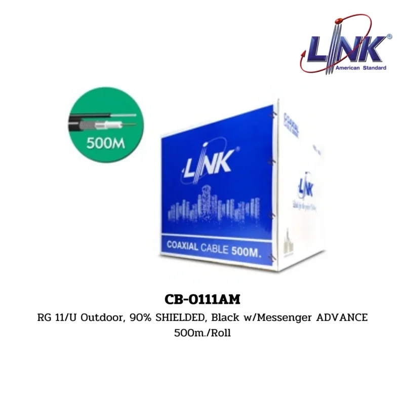 LINK รุ่น CB-0111AM RG 11 OUTDOOR MAIN w/Messenger CCTV CABLE RG 11/U Outdoor, 90% SHIELDED, Black w/Messenger ADVANCE 500m./Roll