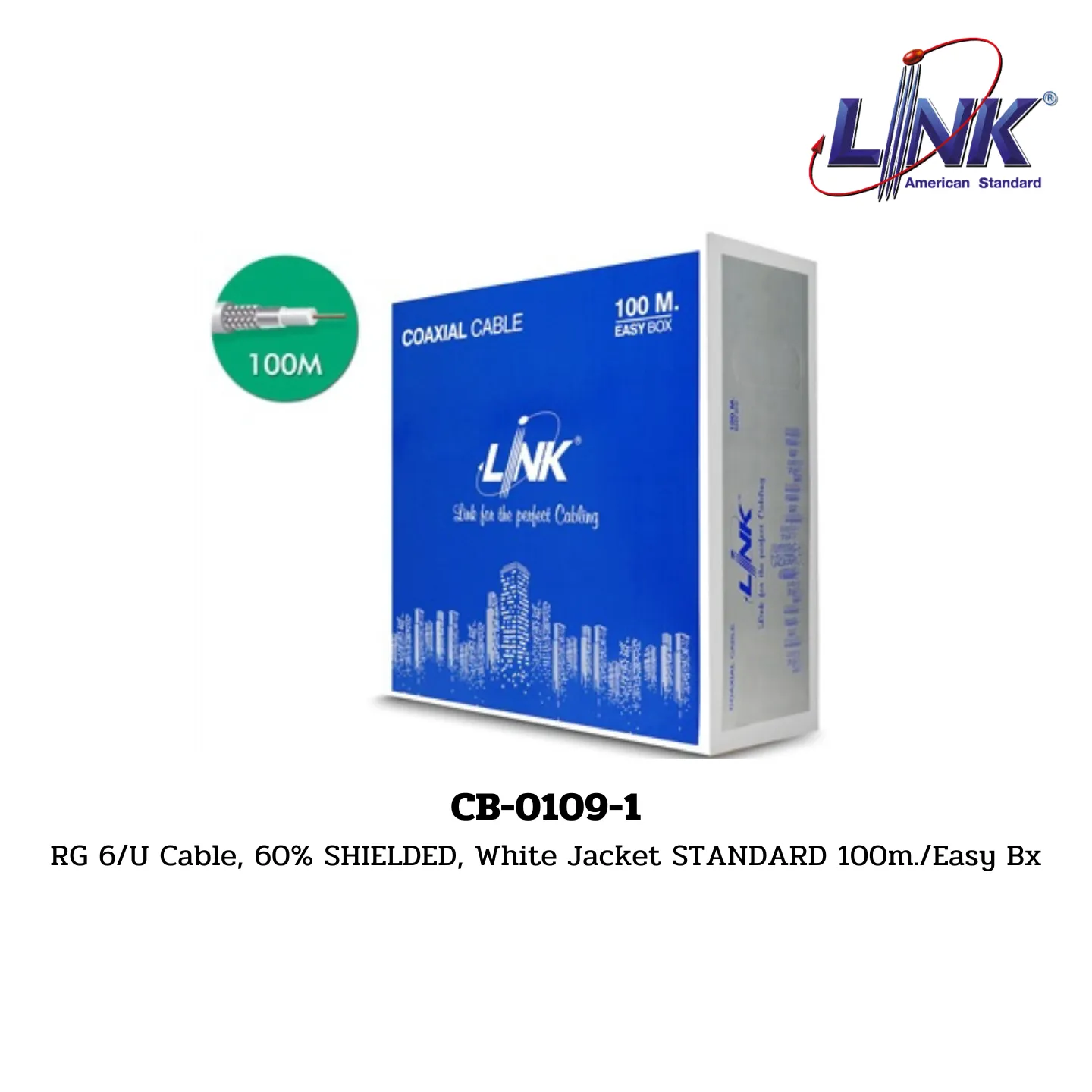 LINK รุ่น CB-0109-1 RG 6 INDOOR CCTV CABLE (100 m. BOX) RG 6/U Cable, 60% SHIELDED, White Jacket STANDARD 100m./Easy Bx.