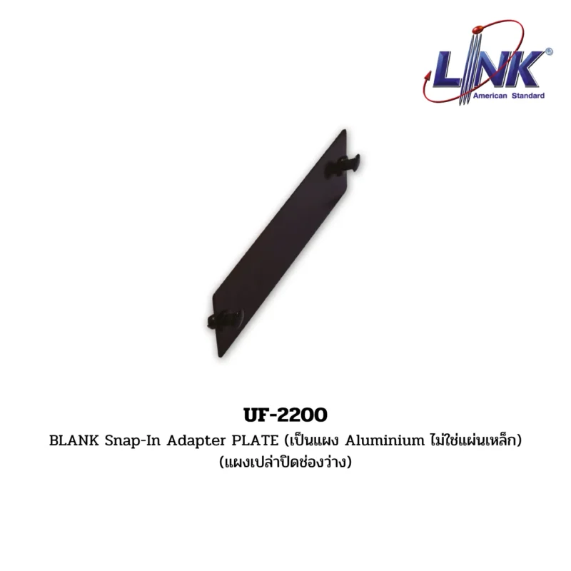 สินค้า BLANK Snap-In Adapter PLATE (เป็นแผง Aluminium ไม่ใช่แผ่นเหล็ก) (แผงเปล่าปิดช่องว่าง) รหัส UF-2200 จากแบรนด์ LINK คือ แผงปิดช่องว่าง (Blank Plate) แบบ Snap-In ที่ใช้สำหรับปิดช่องว่างที่ไม่ได้ใช้งานบนแผงกระจายสายใยแก้วนำแสง (FDU/FDB) ที่มีช่อง Snap-In การปิดช่องว่างช่วยป้องกันฝุ่นเข้าสู่แผงและคงการไหลเวียนของอากาศที่เหมาะสม จุดเด่นของสินค้านี้คือทำจาก อะลูมิเนียม (Aluminium) ซึ่งมีน้ำหนักเบาและทนทานกว่าแผ่นเหล็ก