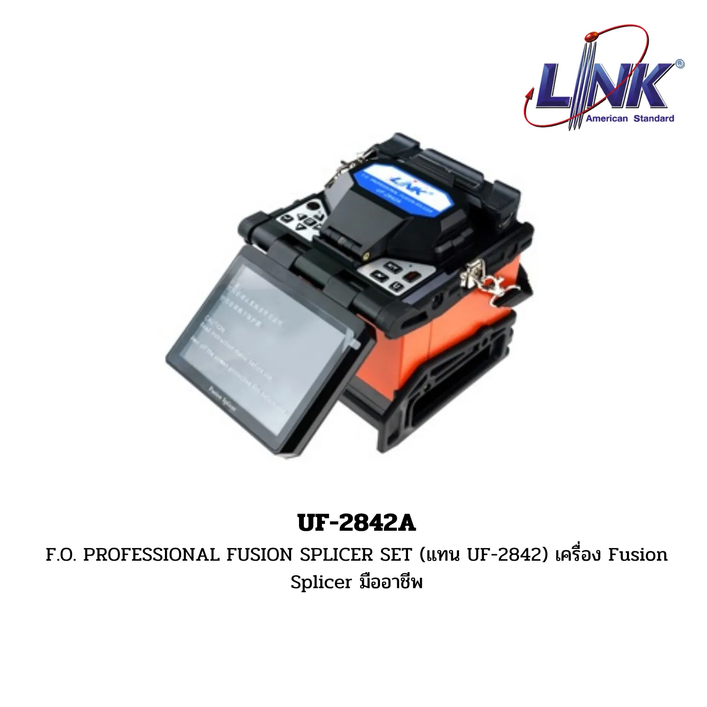 สินค้า F.O. PROFESSIONAL FUSION SPLICER SET (แทน UF-2842) เครื่อง Fusion Splicer มืออาชีพ รหัส UF-2842A จากแบรนด์ LINK คือ ชุดเครื่องมือเชื่อมต่อสายไฟเบอร์ออปติก (Fusion Splicer) ระดับ มืออาชีพ ซึ่งเป็นรุ่นที่เข้ามา แทนที่ (Replace) รุ่นเดิม (UF-2842) เครื่องรุ่นนี้ใช้เทคโนโลยีการเชื่อมต่อด้วยการหลอมละลายเส้นใยแก้วนำแสงเข้าด้วยกัน โดยเน้นที่ความรวดเร็ว ความแม่นยำสูง และความทนทานต่อการใช้งานหนักในภาคสนาม ชุดนี้มาพร้อมกับอุปกรณ์เสริมครบถ้วนสำหรับการเชื่อมต่อสายไฟเบอร์ออปติกทุกประเภท