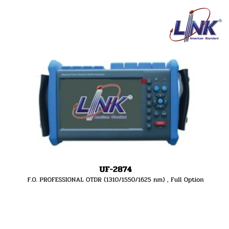สินค้า F.O. PROFESSIONAL OTDR (1310/1550/1625 nm) , Full Option รหัส UF-2874 จากแบรนด์ LINK คือ เครื่องวัดระยะทางและวิเคราะห์สายไฟเบอร์ออปติก (Optical Time Domain Reflectometer – OTDR) ระดับ มืออาชีพ ที่มาพร้อมกับ ฟังก์ชันครบถ้วน (Full Option) เครื่องมือนี้ใช้สำหรับวัดและประเมินคุณภาพของสายไฟเบอร์ออปติก Single-mode โดยมีความโดดเด่นที่รองรับ สามความยาวคลื่น ได้แก่ 1310 nm, 1550 nm, และ 1625 nm ซึ่ง 1625 nm เป็นความยาวคลื่นสำหรับ การทดสอบแบบ Live Fiber (สายที่กำลังใช้งานอยู่)