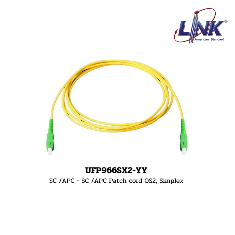 สินค้า SC /APC – SC /APC Patch cord OS2, Simplex รหัส UFP966SX2-YY จากแบรนด์ LINK คือ สาย Patch Cord ไฟเบอร์ออปติก (สายต่อสําหรับตู้ Rack) ใช้หัวต่อชนิด SC Simplex ทั้งสองด้าน โดยหัวต่อขัดปลายแบบ APC (Angled Physical Contact) ตัวสายเป็นชนิด Single-mode (SM) OS2 สำหรับการใช้งานระยะไกล รหัส -YY ในท้ายรหัสสินค้านี้จะถูกแทนที่ด้วยรหัสความยาวเมื่อมีการสั่งซื้อจริง