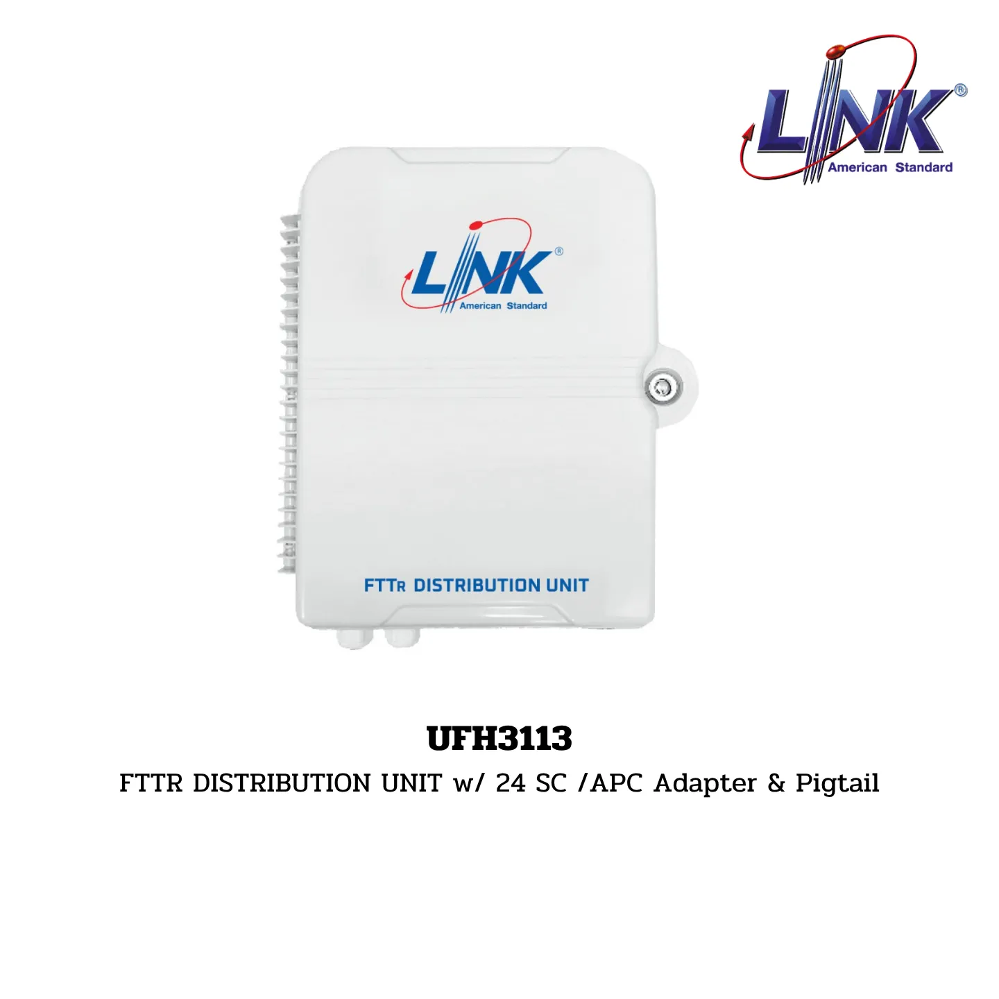 สินค้า FTTR DISTRIBUTION UNIT รหัส UFH3113 จากแบรนด์ LINK คือตู้กระจายสายไฟเบอร์ออปติก (Fiber Distribution Unit – FDU) ที่มีความจุสูงที่สุดในซีรีส์นี้ ออกแบบมาเพื่อใช้เป็นจุดรวมและกระจายสัญญาณหลักในระบบ FTTR/FTTx ภายในอาคารขนาดใหญ่ ตู้นี้มาในรูปแบบชุดสำเร็จรูปที่พร้อมติดตั้ง โดยมี SC/APC Adapter และ Pigtail ติดตั้งมาให้แล้วสำหรับรองรับการเชื่อมต่อไฟเบอร์ได้ถึง 24 พอร์ต