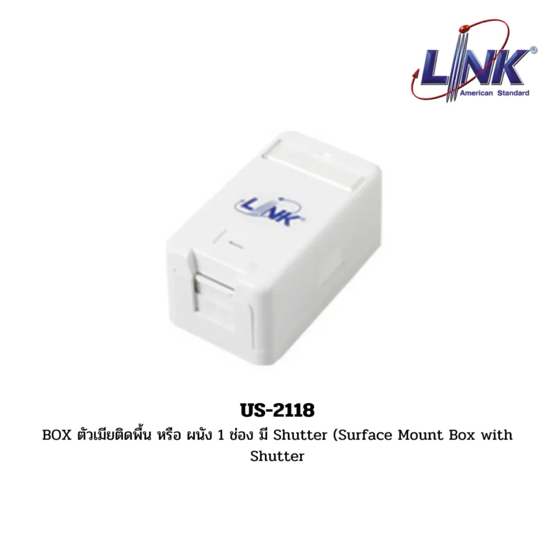 Overview: The US-2118 Surface Mount Box, designed with a shutter and a single port, is ideal for both floor and wall installations. This box ensures a neat and professional appearance in network setups. It is part of the FACE PLATE, WALL BOX, CHANGER sub-range under the LAN (UTP) System by LINK.