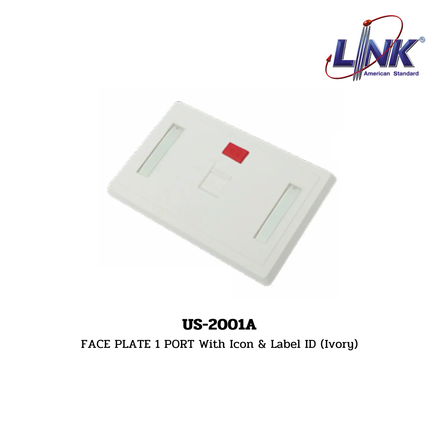 Overview: The US-2001A Face Plate, featuring a single port with icon and label ID and an ivory finish, is designed to provide a neat and professional appearance for network and electrical installations. This face plate is part of the FACE PLATE, WALL BOX, CHANGER sub-range under the LAN (UTP) System by LINK.