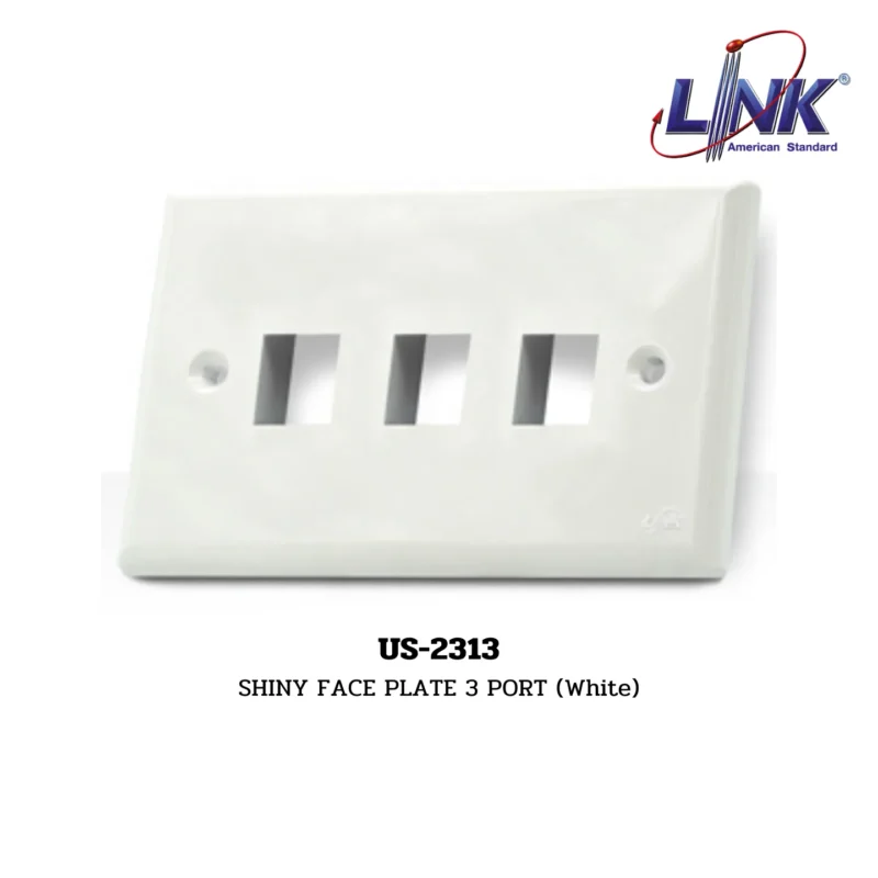 Overview: The US-2313 Shiny Face Plate, featuring three ports and a white finish, is designed to provide a neat and professional appearance for network and electrical installations. This face plate is part of the FACE PLATE, WALL BOX, CHANGER sub-range under the LAN (UTP) System by LINK.