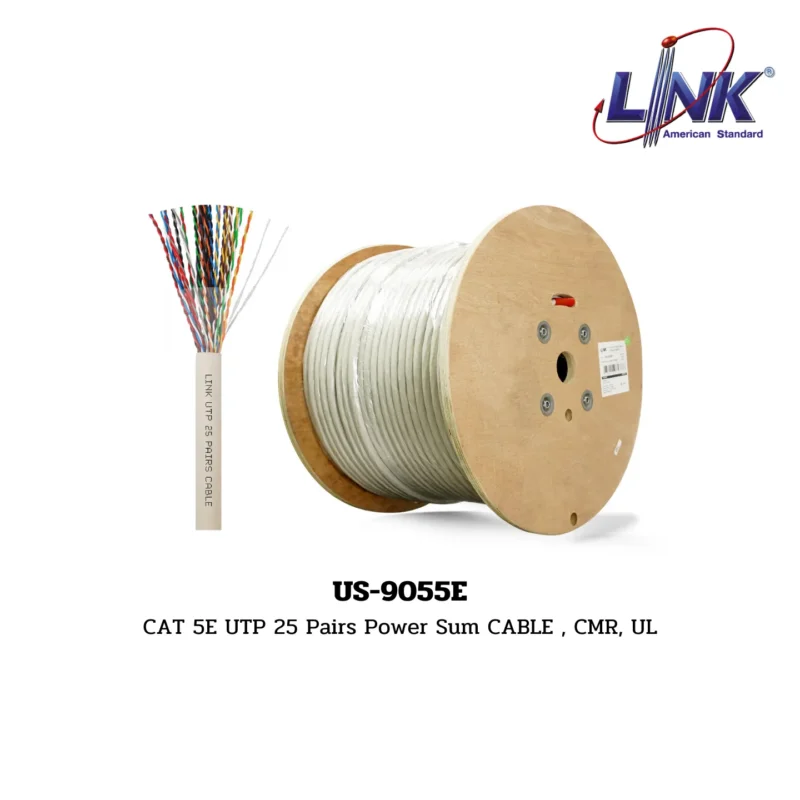 Overview: The US-9055E CAT 5E UTP 25 Pairs Power Sum Cable, featuring a CMR (Communications Multipurpose Plenum) rating and UL certification, is designed for high-performance and safe network connectivity. This cable is part of the INDOOR (UL Sticker) range under the LAN (UTP) CAT 5E 350 MHz sub-range by LINK.
