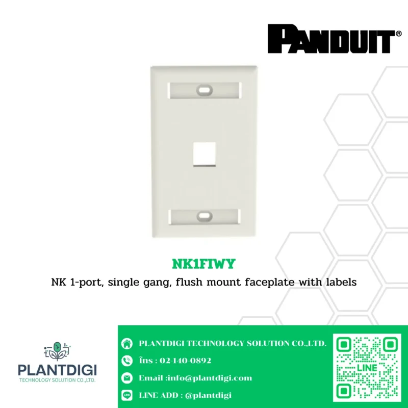 The NK 1-port, Single Gang, Flush Mount Faceplate with Labels (NK1FIWY) is designed for easy and efficient cable management in networking and telecommunications applications. This faceplate offers a clean and professional appearance while providing a convenient labeling system for organized cable identification.
