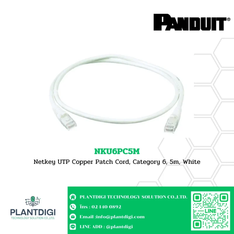 The Netkey UTP Copper Patch Cord, Category 6, 5m, White (NKU6PC5M) is designed for high-performance networking applications, offering reliable and efficient connectivity. This patch cord ensures excellent data transmission and is suitable for various networking environments, including Ethernet, ATM, digital video, and VoIP.