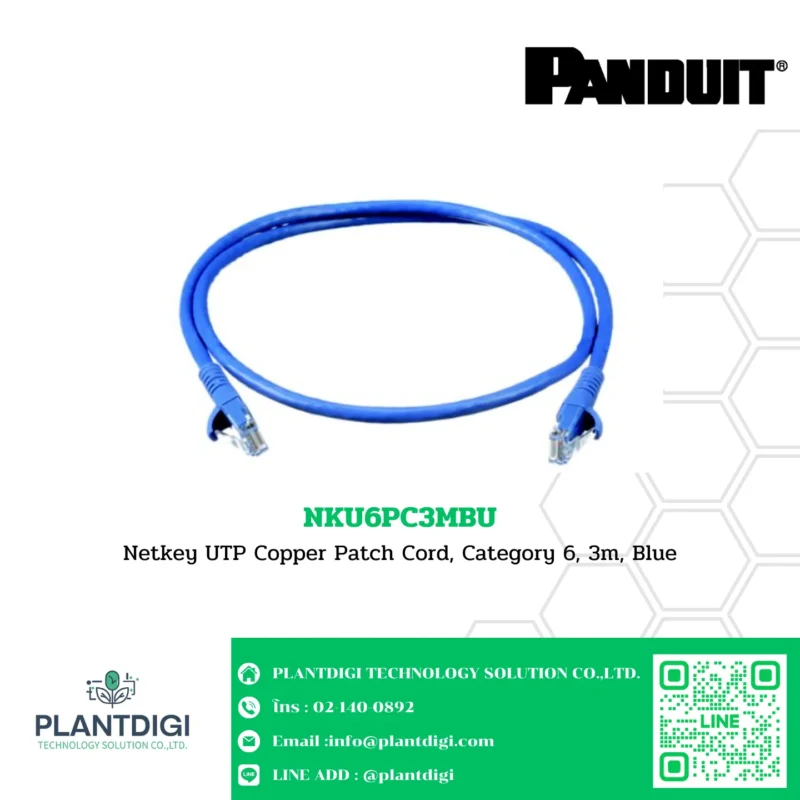 The Netkey UTP Copper Patch Cord, Category 6, 3m, Blue (NKU6PC3MBU) is designed for high-performance networking applications, offering reliable and efficient connectivity. This patch cord ensures excellent data transmission and is suitable for various networking environments, including Ethernet, ATM, digital video, and VoIP.