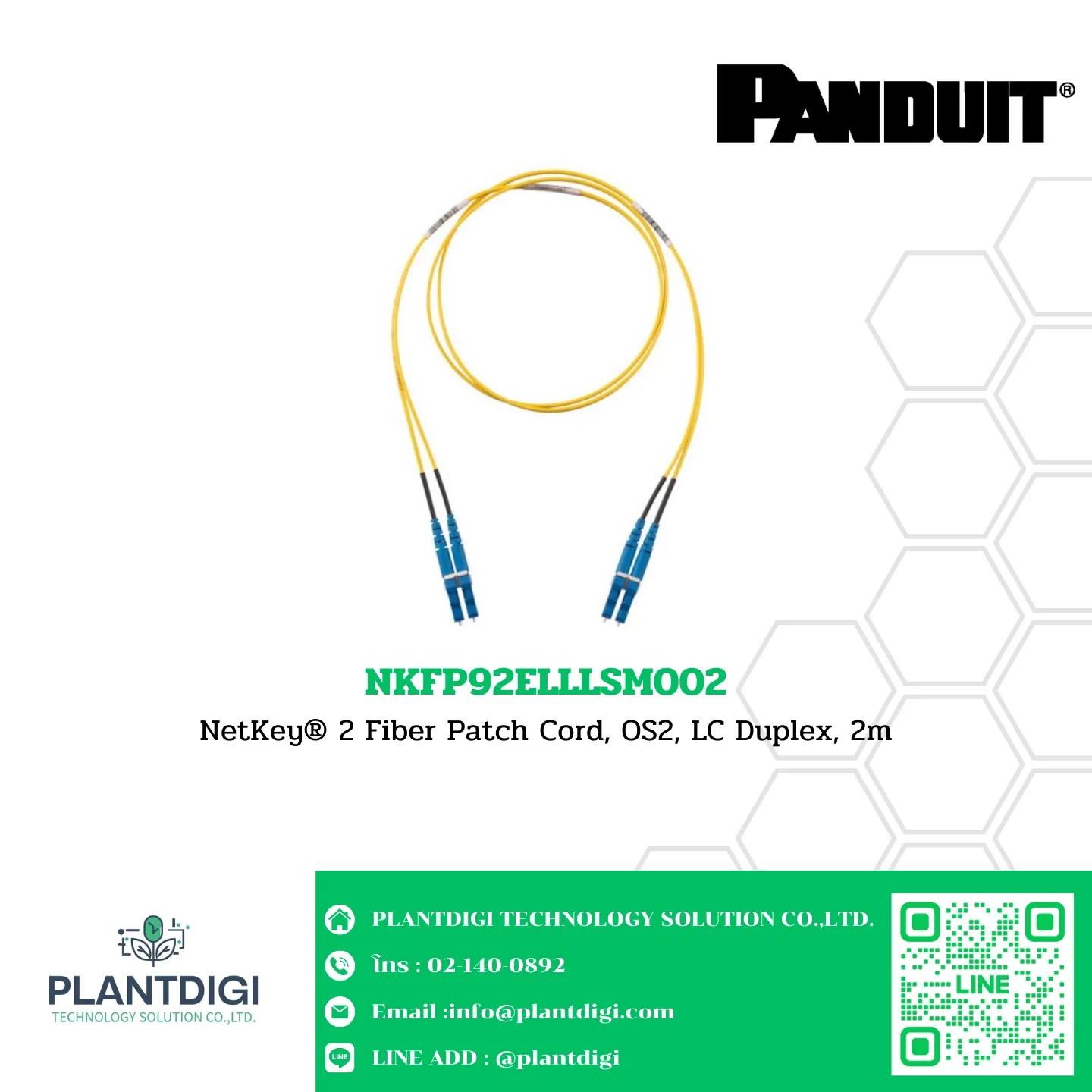 NetKey® 2 Fiber Patch Cord, OS2, LC Duplex, 2m