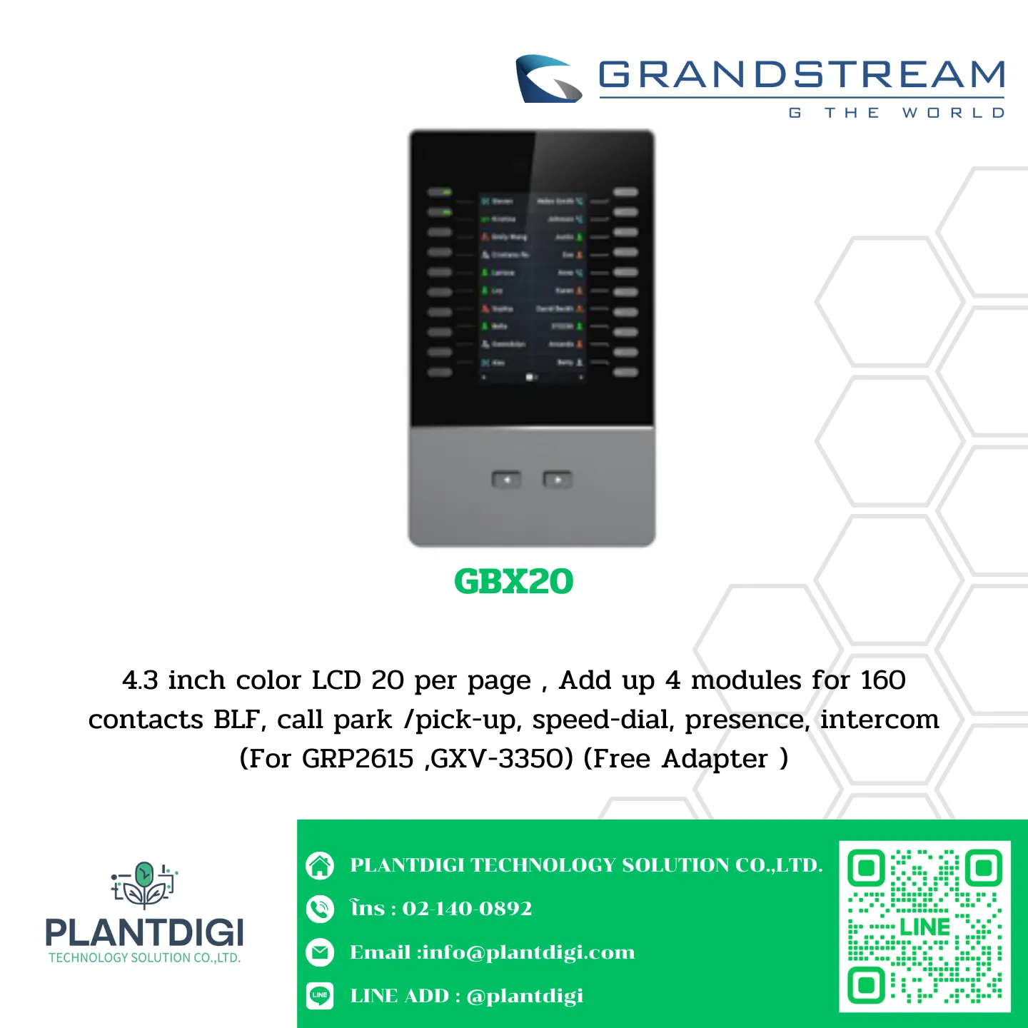 4.3 inch color LCD 20 per page , Add up 4 modules for 160 contacts BLF, call park /pick-up, speed-dial, presence, intercom (For GRP2615 ,GXV-3350) (Free Adapter )