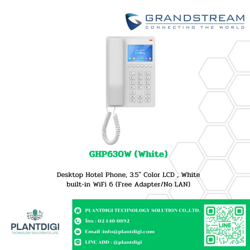 The GHP Series of hotel phones, including the GHP630/GHP630W and GHP631/GHP631W models, are user-friendly IP phones customizable for hotel needs. The GHP630W and GHP631W feature integrated dual-band Wi-Fi 6 for wireless setups. This series offers HD audio, 2 SIP accounts/lines, 6 context-sensitive soft keys, 10 speed-dial keys, 3-way conferencing, and advanced jitter resilience. Managed by the GDMS, these phones can be installed on a desktop or wall and powered by PoE, an adapter, or USB Type-C. Their sleek design makes them ideal for hotels, apartments, dormitories, hospitals, and retail stores.