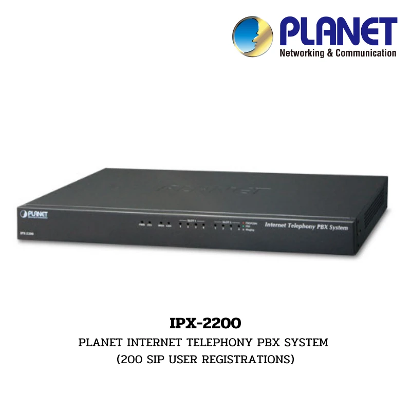 Planet IPX-2200 เป็นระบบตู้สาขาโทรศัพท์ผ่านเครือข่ายไอพี (IP PBX) ระดับองค์กรที่รองรับการใช้งานได้สูงสุดถึง 200 SIP User Registrations และรองรับการโทรพร้อมกันได้ถึง 80 คู่สาย จุดเด่นของรุ่นนี้คือความยืดหยุ่นในการขยายระบบด้วยช่องเสียบโมดูล (Slots) จำนวน 2 ช่อง ซึ่งรองรับพอร์ตการใช้งานสูงสุดได้ถึง 8 พอร์ต (ไม่ว่าจะเป็น FXO หรือ GSM) ตัวเครื่องถูกออกแบบมาในขนาดมาตรฐานสำหรับติดตั้งในตู้ Rack (1U) รองรับฟีเจอร์การสื่อสารที่ล้ำสมัย การเข้ารหัสความปลอดภัยระดับสูง