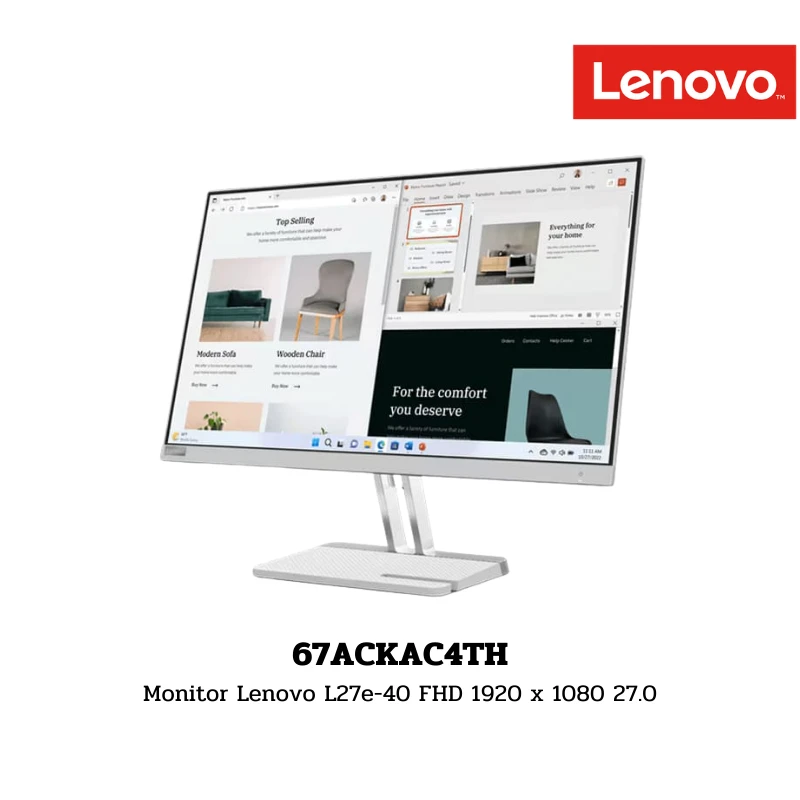 Lenovo L27e-40 เป็นจอมอนิเตอร์ขนาด 27 นิ้ว ที่รวมความสวยงามและเทคโนโลยีถนอมสายตาเข้าไว้ด้วยกัน โดดเด่นด้วยสี Cloud Grey และพาเนล VA ที่ให้คอนทราสต์สูงถึง 3000:1 ช่วยให้ภาพดูมีมิติและคมชัด มาพร้อมอัตรารีเฟรช 100Hz เพื่อประสบการณ์การรับชมที่ลื่นไหล และผ่านการรับรองด้านการถนอมสายตาหลายระดับ (TÜV Rheinland® Eye Comfort, Eyesafe® Display 2.0) ช่วยลดความเมื่อยล้าจากการใช้งานเป็นเวลานาน