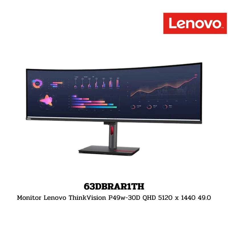 ThinkVision P49w-30 เป็นจอมอนิเตอร์ระดับ Ultra-Wide ขนาดใหญ่พิเศษถึง 49 นิ้ว อัตราส่วน 32:9 ซึ่งเทียบเท่ากับหน้าจอ QHD ขนาด 27 นิ้วสองจอวางต่อกันโดยไม่มีรอยต่อ พาเนลเป็นแบบ IPS Black ที่ให้ค่าคอนทราสต์สูงถึง 2000:1 มอบสีดำที่ลุ่มลึกและสีสันที่แม่นยำระดับ 100% sRGB รองรับการเชื่อมต่อผ่านพอร์ตระดับสูงทั้ง Thunderbolt™ 4 และ USB-C