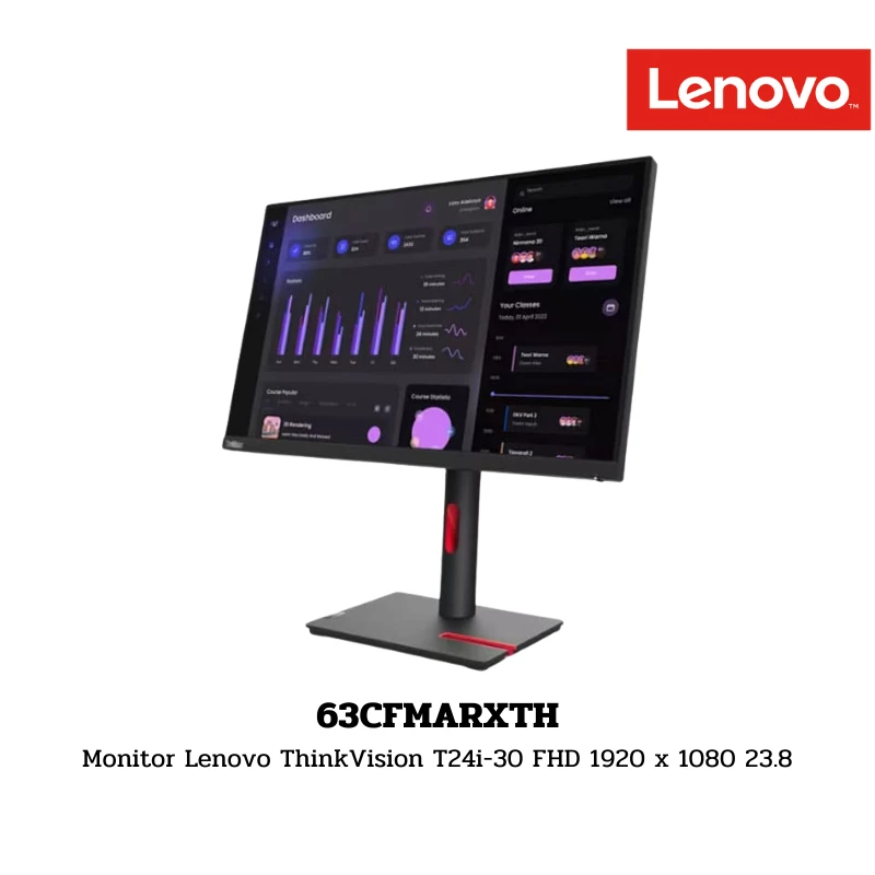 ThinkVision T24i-30 เป็นจอมอนิเตอร์ขนาด 23.8 นิ้ว ยอดนิยมที่ออกแบบมาเพื่อตอบโจทย์การทำงานในออฟฟิศระดับมืออาชีพอย่างแท้จริง มาพร้อมพาเนล IPS ที่ให้สีสันแม่นยำระดับ 99% sRGB และเทคโนโลยี Natural Low Blue Light ที่ช่วยถนอมสายตาโดยไม่ทำให้สีบนจอเพี้ยน โดดเด่นด้วยการเป็น USB Hub ในตัว และขาตั้งที่ปรับได้ครบทุกฟังก์ชัน (Full Function Stand)