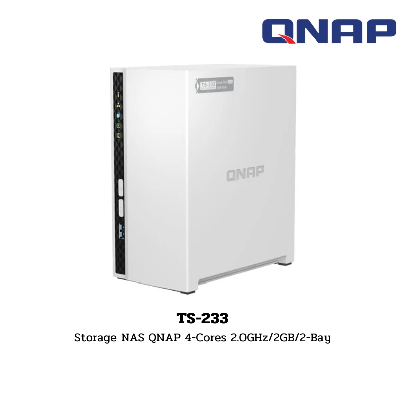 เครื่องจัดเก็บข้อมูลอัจฉริยะ (NAS) จาก QNAP รุ่น TS-233 เป็นโซลูชันสำหรับการสร้างคลาวด์ส่วนตัวที่สมบูรณ์แบบสำหรับบ้านและสำนักงานขนาดเล็ก ขับเคลื่อนด้วยหน่วยประมวลผล ARM 4-core Cortex-A55 ความเร็ว 2.0GHz และ RAM 2GB ในตัว มอบประสิทธิภาพที่เพียงพอสำหรับการสำรองข้อมูลไฟล์สำคัญ การจัดการอัลบั้มรูปภาพด้วย AI และการแชร์ไฟล์ระหว่างอุปกรณ์ต่างๆ ได้อย่างง่ายดาย ตัวเครื่องรองรับช่องใส่ฮาร์ดดิสก์ 2 ช่อง (2-Bay) สามารถทำ RAID 1 เพื่อป้องกันข้อมูลสูญหายกรณีฮาร์ดดิสก์เสีย 1 ลูก ดีไซน์แบบ Tower สีขาวมินิมอล ทำงานเงียบและประหยัดพลังงาน มั่นใจด้วยระบบ Dual boot OS protection และการรับประกัน 2 ปี