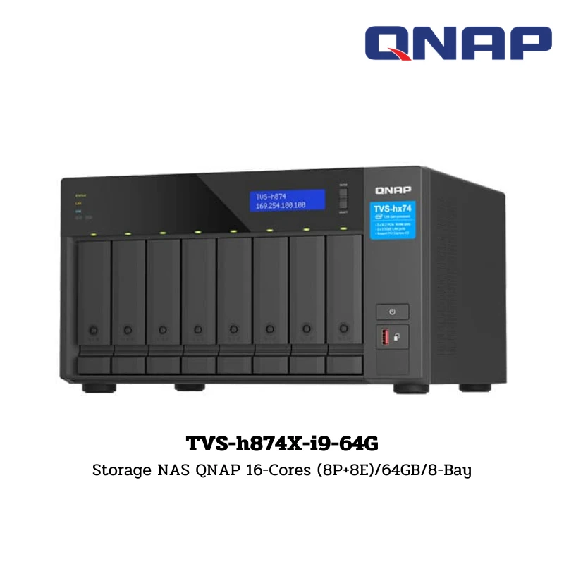 QNAP TVS-h874X-i9-64G เป็นอุปกรณ์ Storage NAS ระดับองค์กรในซีรีส์ QuTS hero ที่ออกแบบมาเพื่อรองรับการจัดเก็บข้อมูลและการประมวลผลที่ต้องการประสิทธิภาพสูง เช่น Virtualization, Backup Server, File Server และงาน Multimedia ระดับมืออาชีพ โดยใช้ระบบปฏิบัติการ QuTS hero (ZFS-based) ที่มีความสามารถด้านการป้องกันข้อมูลเสียหาย (Data Integrity), Snapshot และการจัดการ Storage ขั้นสูง