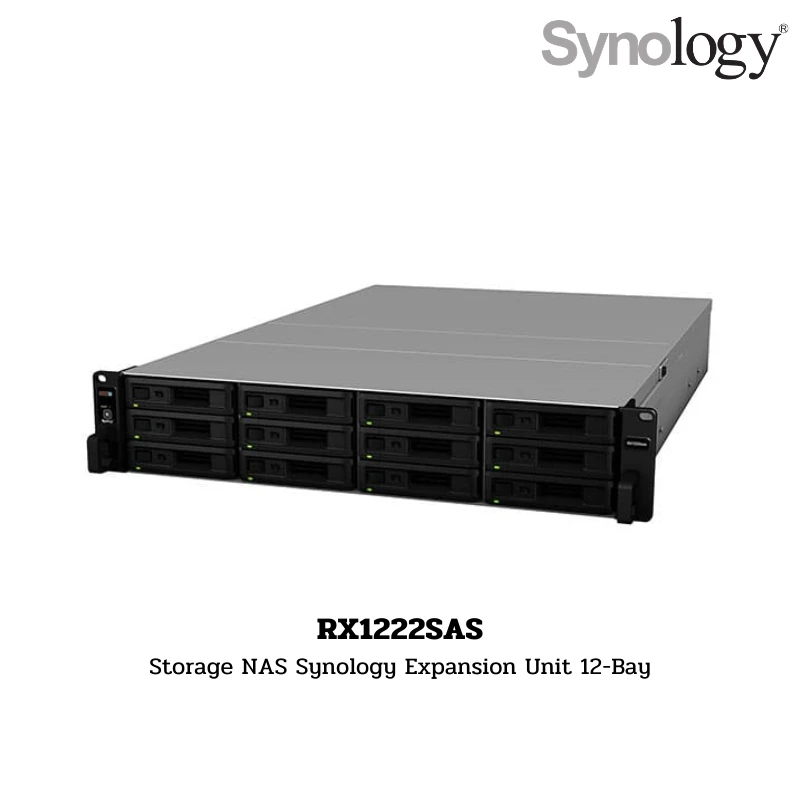 Synology RX1222SAS เป็น Expansion Unit สำหรับขยายพื้นที่จัดเก็บข้อมูลของ Synology NAS ระดับ Enterprise โดยเพิ่ม Drive Bay ได้สูงสุด 12 ช่อง เหมาะสำหรับองค์กรหรือ Data Center ที่ต้องการเพิ่มความจุ Storage และรองรับระบบที่ต้องการประสิทธิภาพและความเสถียรสูง ตัวเครื่องรองรับไดรฟ์หลายประเภท ได้แก่ 3.5-inch SAS HDD, 2.5-inch SAS SSD, 3.5-inch SATA HDD และ 2.5-inch SATA SSD ทำให้สามารถเลือกใช้ไดรฟ์ตามลักษณะงาน เช่น SAS สำหรับระบบที่ต้องการความเสถียรสูง หรือ SATA สำหรับการจัดเก็บข้อมูลขนาดใหญ่