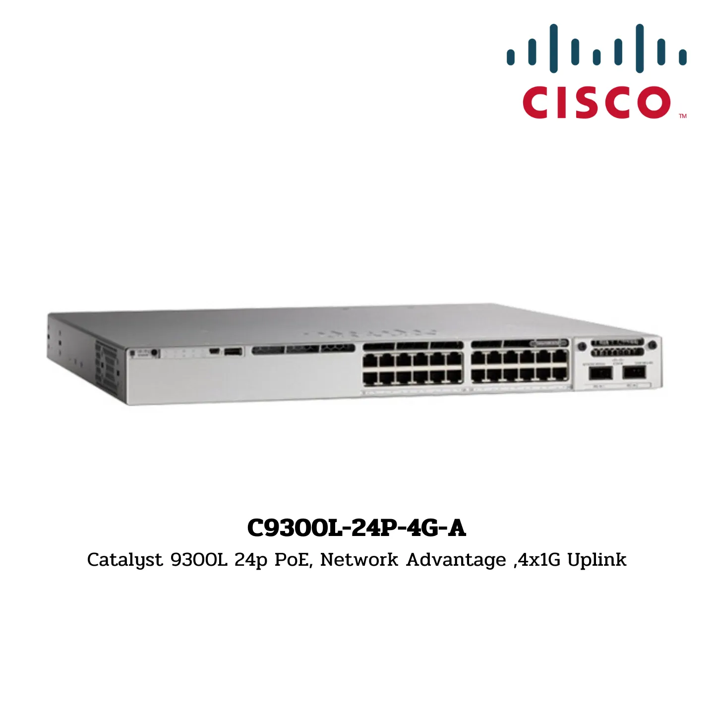 - Catalyst 9300L 24-port PoE, Network Advantage, 4x1G Uplink