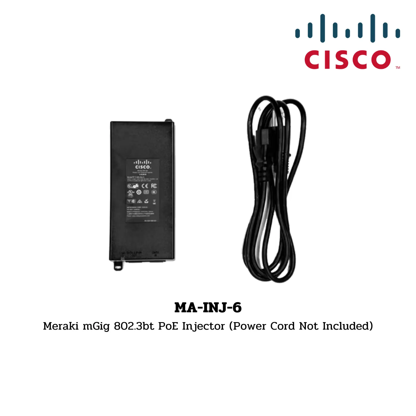 - MA-INJ-6: Meraki Multigigabit 802.3bt Power over Ethernet Injector world-wide unit