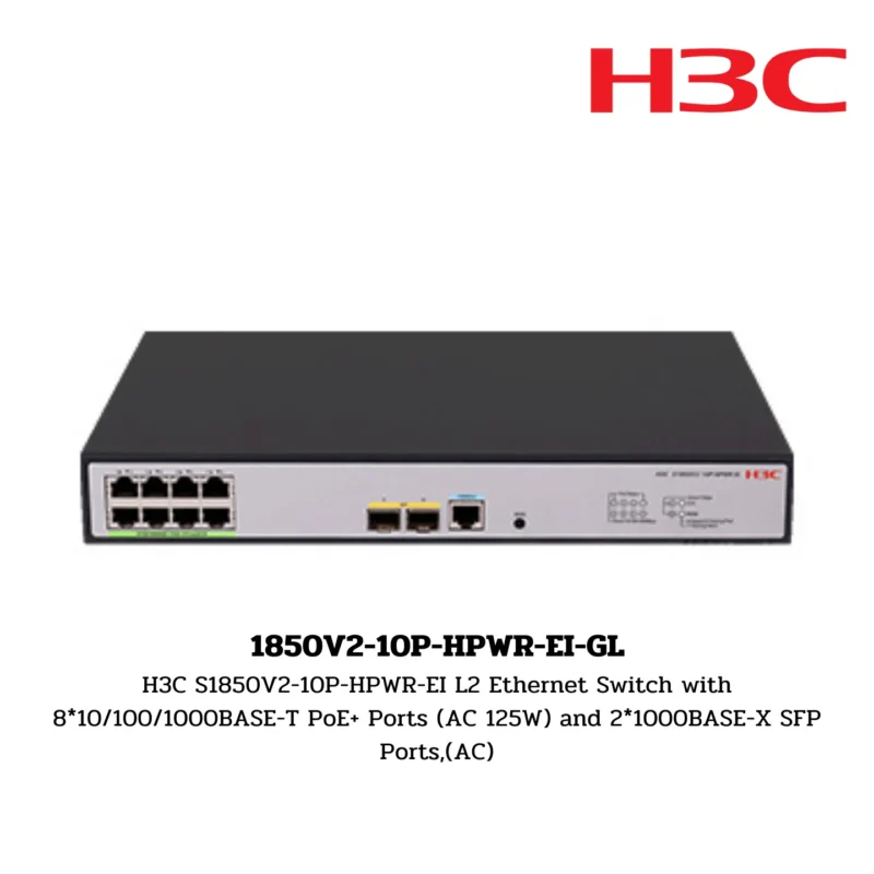 H3C S1850V2-10P-HPWR-EI L2 Ethernet Switch with 8*10/100/1000BASE-T PoE+ Ports (AC 125W) and 2*1000BASE-X SFP Ports,(AC)