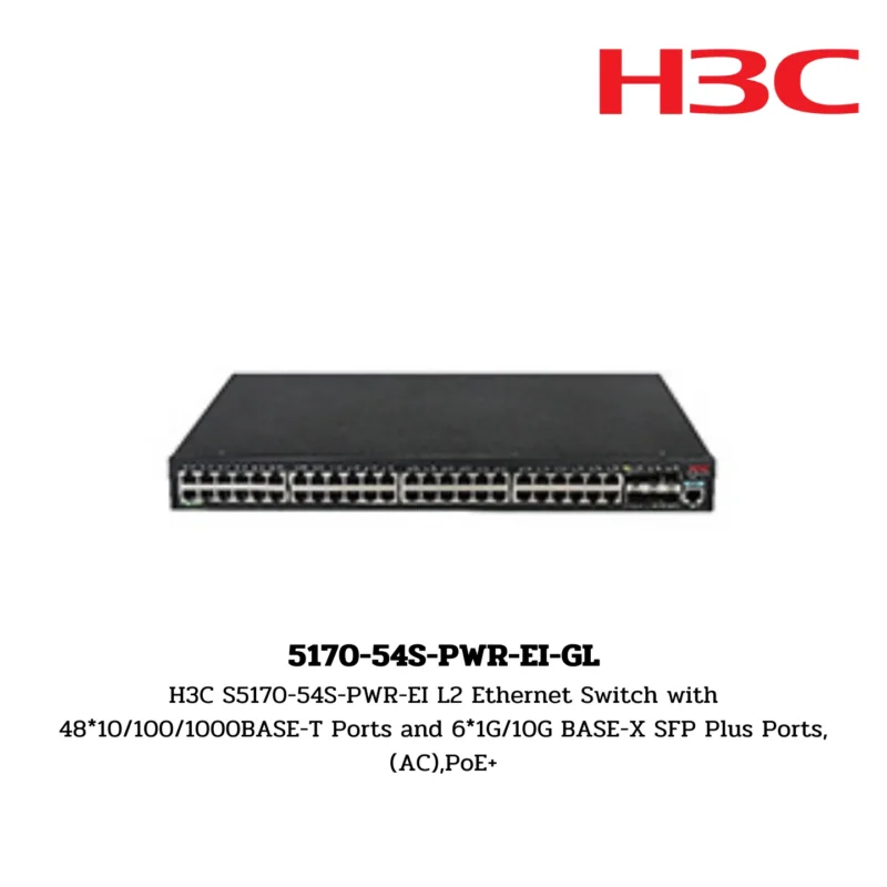 H3C S5170-54S-PWR-EI L2 Ethernet Switch with 48*10/100/1000BASE-T Ports and 6*1G/10G BASE-X SFP Plus Ports,(AC),PoE+