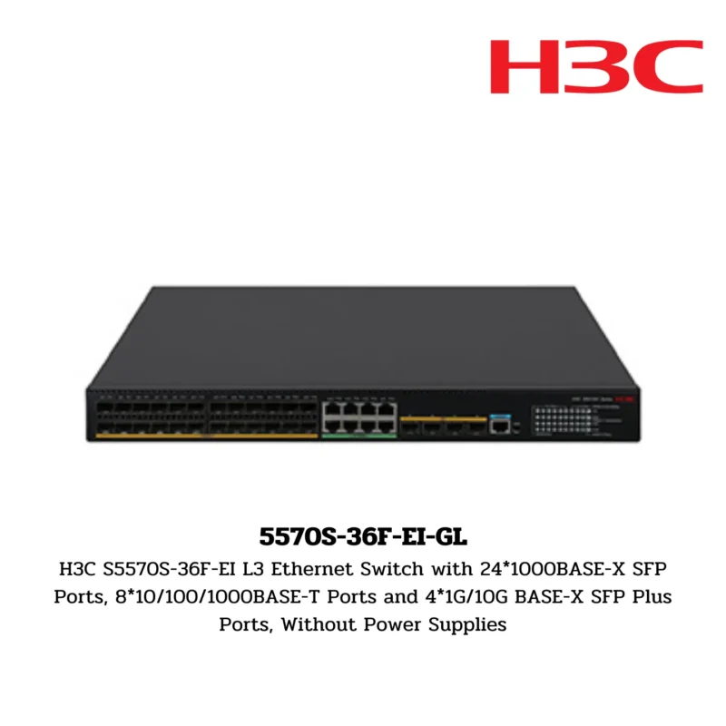 H3C S5570S-36F-EI L3 Ethernet Switch with 24*1000BASE-X SFP Ports, 8*10/100/1000BASE-T Ports and 4*1G/10G BASE-X SFP Plus Ports, Without Power Supplies